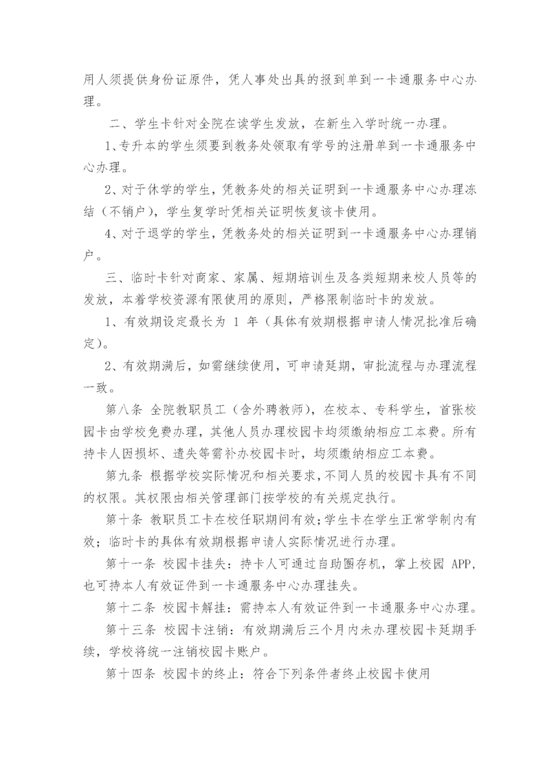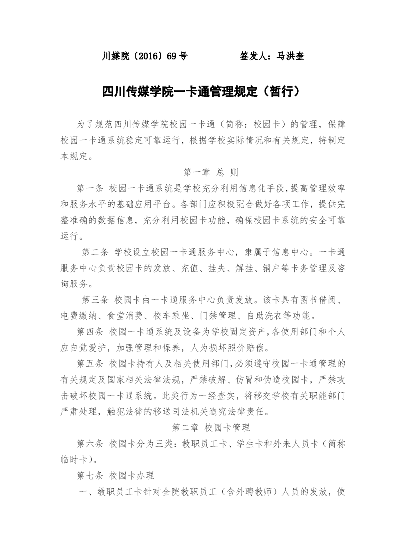 四川传媒学院一卡通管理规定(暂行)