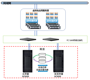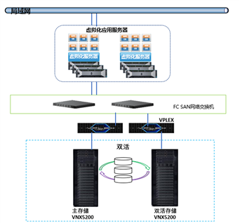 阶段一:提供系统高性能、大容量支持,结合现有存储双活体系,保障数据高可用性。将原有主VNX5200存储系统更新为SC5020存储系统。将新SC5020存储作为主存储系统。