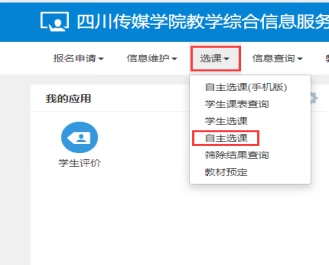 登录成功后页面跳转到个人主页,点击“选课”--“自主选课”,如图所示: