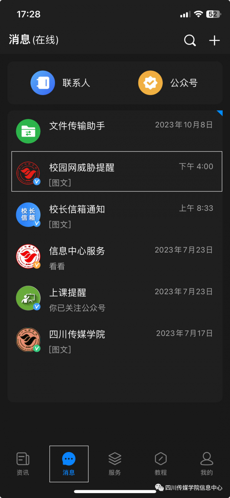 查看方式:智慧川传APP-消息-校园网威胁提醒