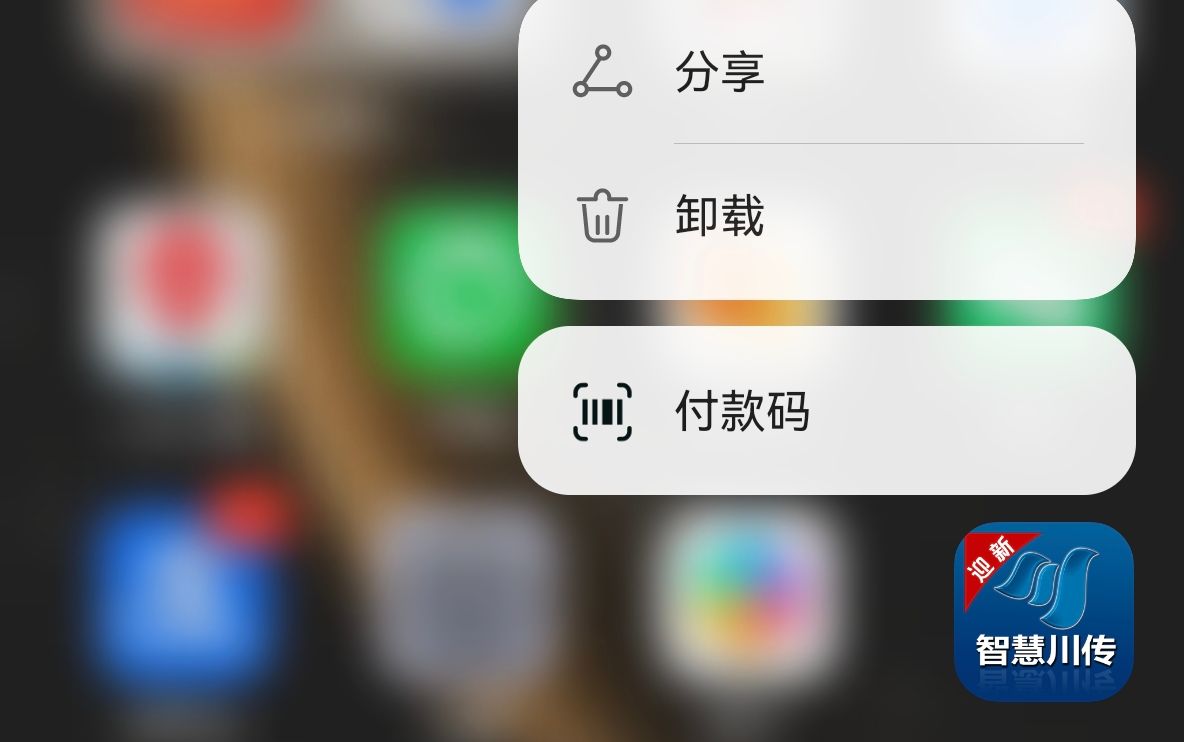 本次升级的核心亮点为食堂支付便捷化优化。此前,师生就餐支付需依次打开APP、查找服务模块、点击付款码,操作流程繁琐,就餐高峰期易出现排队拥堵情况。更新后,师生仅需长按智慧川传APP图标,即可一键调出付款码,实现“秒速出码、快速支付”,高效解决排队难题,充分兼顾师生赶课与就餐的双重需求。
